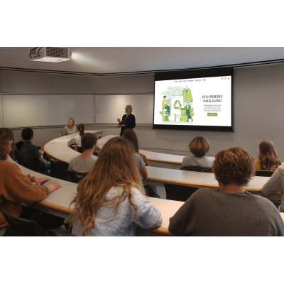 En raison de son engagement en faveur du développement durable, le ZH401e a une consommation d’énergie réduite allant jusqu'à 45% par rapport à un projecteur Optoma à lampe. De plus, la technologie laser garantit une durée de vie allant jusqu'à 30 000 heures sans changement de lampe et une maintenance minimale. Le projecteur est également conçu sans mercure, réduisant ainsi son empreinte carbone.